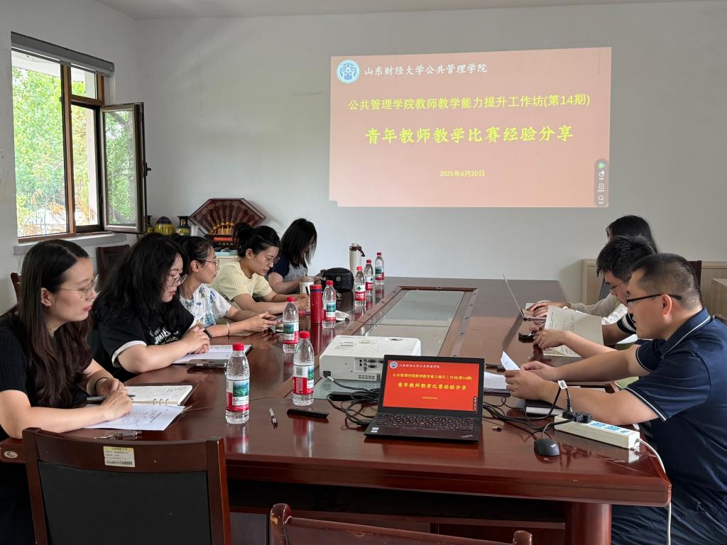 青年教师、山东省第十二届高校青年教师教学比赛一等奖获得者蒋晓莹作教学比赛经验专题分享。活动由政府管理系系主任邹涛主持。
