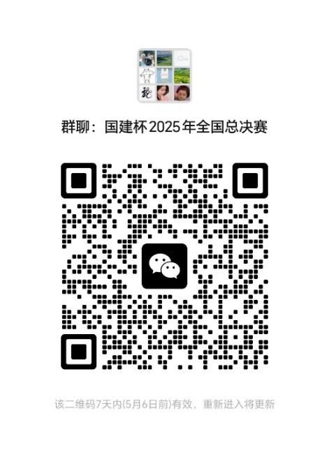 全国大赛其他事宜请及时关注组委会通知,请入围团队尽快加入全国大赛交流微信群,并于2025年5月6日24:00前提交参赛回执和承诺书(附件2)。对于未及时发送参赛回执,或经组委会沟通仍无肯定答复的参赛队伍,将视为自动弃权。因接待能力有限,每队到现场的师生原则上不要超过3人。微信群二维码有效期7天,请各参赛队伍及时加入微信群。