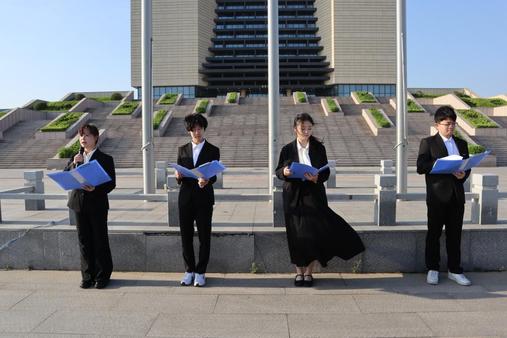 来自2024级的四名学生代表带来了朗诵节目《少年为何而读书》。朗诵者以饱满的情感回顾了周恩来“为中华之崛起而读书”的壮志豪情,以及鲁迅、钱学森等先贤的奋斗精神,发出"以书为剑、以梦为帆"的青春宣言,激励新时代青年勇担民族复兴使命,在实现中国梦的伟大征程中书写属于自己的华章。